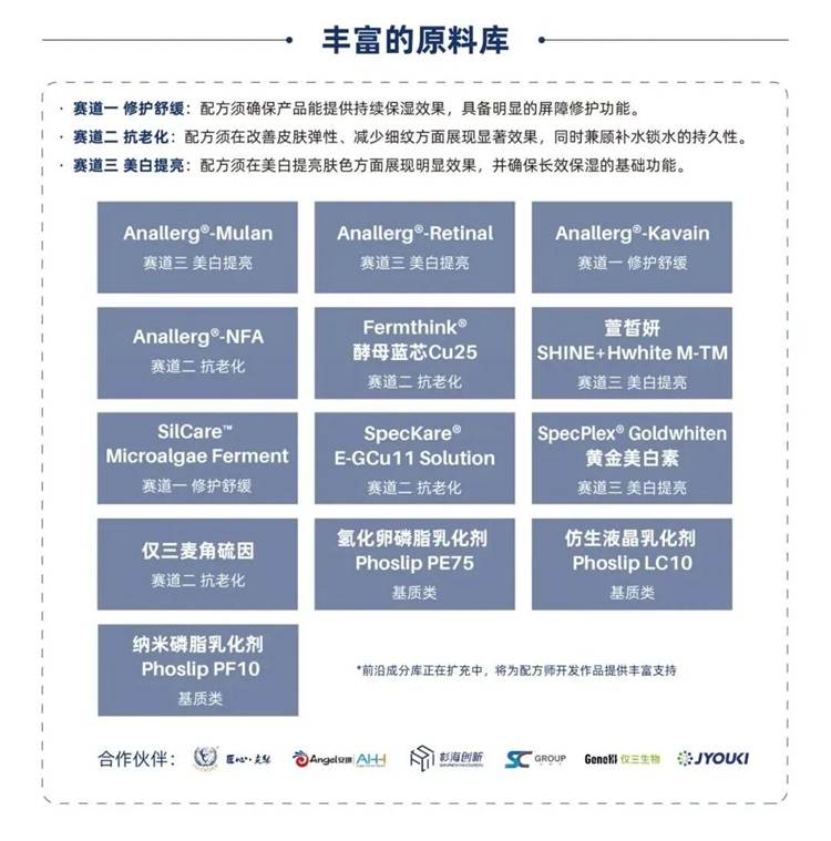 This year, five industry-leading suppliers collaborated to provide ten cutting-edge ingredients that span the three major efficacy tracks—repair and soothing, anti-aging, and whitening and brightening. The selection also introduced advanced matrix raw materials and innovative emulsifiers to meet demands for optimized skin feel.