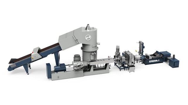 At K 2025, EREMA expands its portfolio to include high-performance twin-screw extruder technology. With the new TwinPro, the Austrian provider of plastics recycling solutions combines the advantages of a twin-screw extruder with the proven strengths of its Preconditioning Unit (PCU) to be used for specific recycling applications.Producing high-quality recycled pellets using complex input materials such as multilayer film consisting of PE-PA or PE-EVOH is a major challenge for the recycling process. This is where the new TwinPro comes in, with its key feature of highly efficient homogenisation. The first stage of homogenisation takes place in the preconditioning unit (PCU), which shreds, heats, dries, compacts and buffers the input material. Optimised material preparation right at the start of the recycling process lays the foundation for consistently high-quality end products. Thanks to patented Counter Current® technology, the extruder, which is directly coupled at a tangent to the PCU, is continuously filled with heated and pre-compacted material. Even with low bulk density material like film waste, the PCU is able to deliver full throughput. The PCU covers an exceptionally wide bandwidth of input materials, with bulk densities of 30 to 800 grams per litre reliably processed in a single work step, without the need for separate agglomeration, weighing or a stuffing unit.