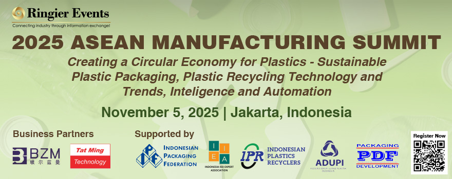 The 2025 ASEAN Manufacturing Summit – Creating a Circular Economy (November 5/Jakarta, Indonesia) serves as an ideal platform for packaging manufacturers and plastic recyclers to explore recent developments in technologies and materials toward a circular economy. Organized by Ringier Events, the Summit is one of the long-running conferences on the topic of circular economy, attracting hundreds of delegates each year who are key decision-makers from leading industry players.