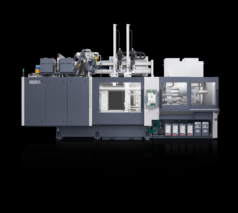 DESMA SEALMASTER 450+ DUO with 2 injection units and integrated vertical transfer system for multi-level production.