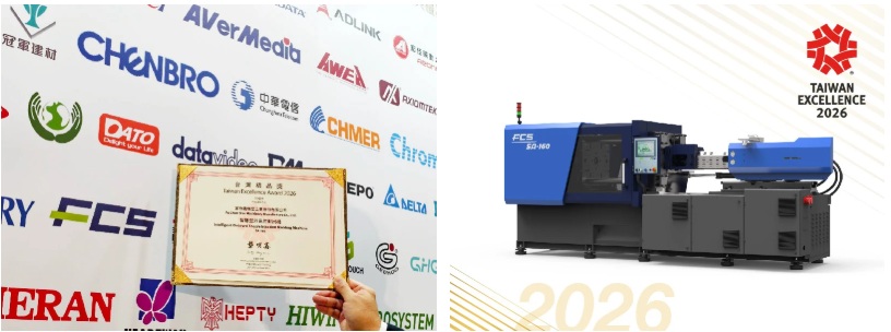 On November 26, the 34th Taiwan Excellence Award Ceremony was held in Taipei. Fu Chun Shin (FCS Group)’s SA-160 Intelligent Outward Toggle Injection Molding Machine was honored at the event, with R&D Manager Mr. Chiu Kuan-Chih representing the company on stage to accept the award. The ceremony gathered leading enterprises recognized for innovation and manufacturing excellence. FCS drew significant attention with the SA Series’ advancements in smart control, energy efficiency, and high-precision molding performance.
