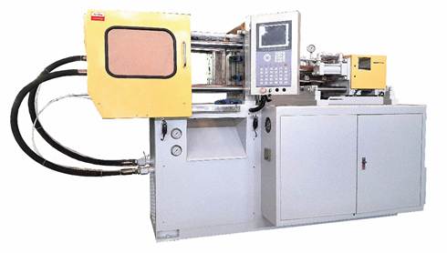 Tat Ming offers several small IMM models, from 8 tons to 23 tons of clamping force. The MA8 has a footprint of 2 m x 0.8 m and weighs 0.8 ton. The MB23 is bigger at 3 m x 1 m and weighs 1.6 tons. Both models are direct hydraulic clamped. A toggle-clamped 50-ton machine is also available.