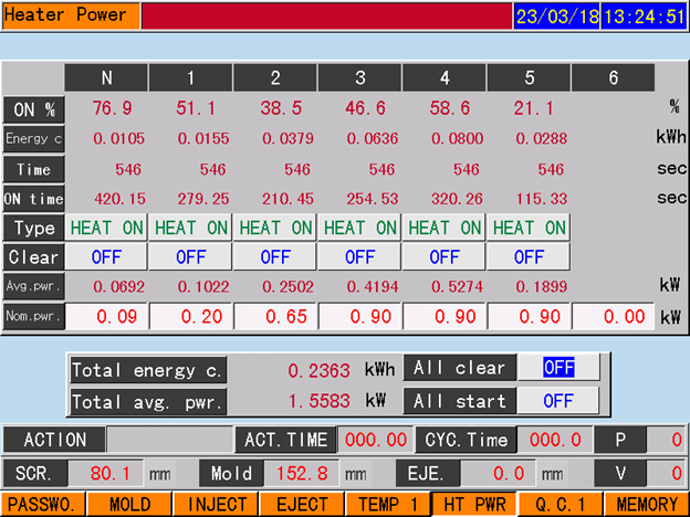 Different barrel covers have different insulation characteristics to reduce heat loss. The Heater Power screen allows their energy consumption to be measured to evaluate the designs.