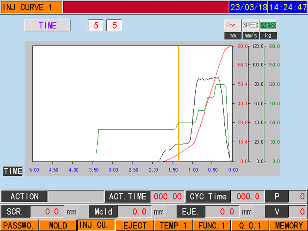 What is happening inside the mold determines parts quality. Injection curves in screw position and speed, and in injection pressure let us visualize the injection and holding pressure processes. They help us set the injection parameters that produce good parts.