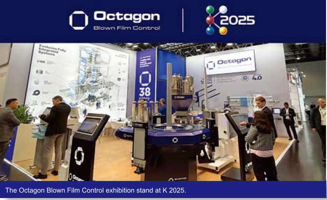 A new era in blown film extrusion was unveiled at K 2025 as Octagon Blown Film Control marked a significant milestone in its 38-year history. The Octagon team welcomed visitors from more than 60 countries and showed off its technologies that are reshaping the future of blown film extrusion. Announcing its presence with a tagline “A New Era of Extrusion,” wasn’t just marketing rhetoric but a promise. A promise that Octagon kept by introducing Integrated Artificial Intelligence directly embedded into its blown film control systems, marking the industry’s first true leap into intelligent automation.