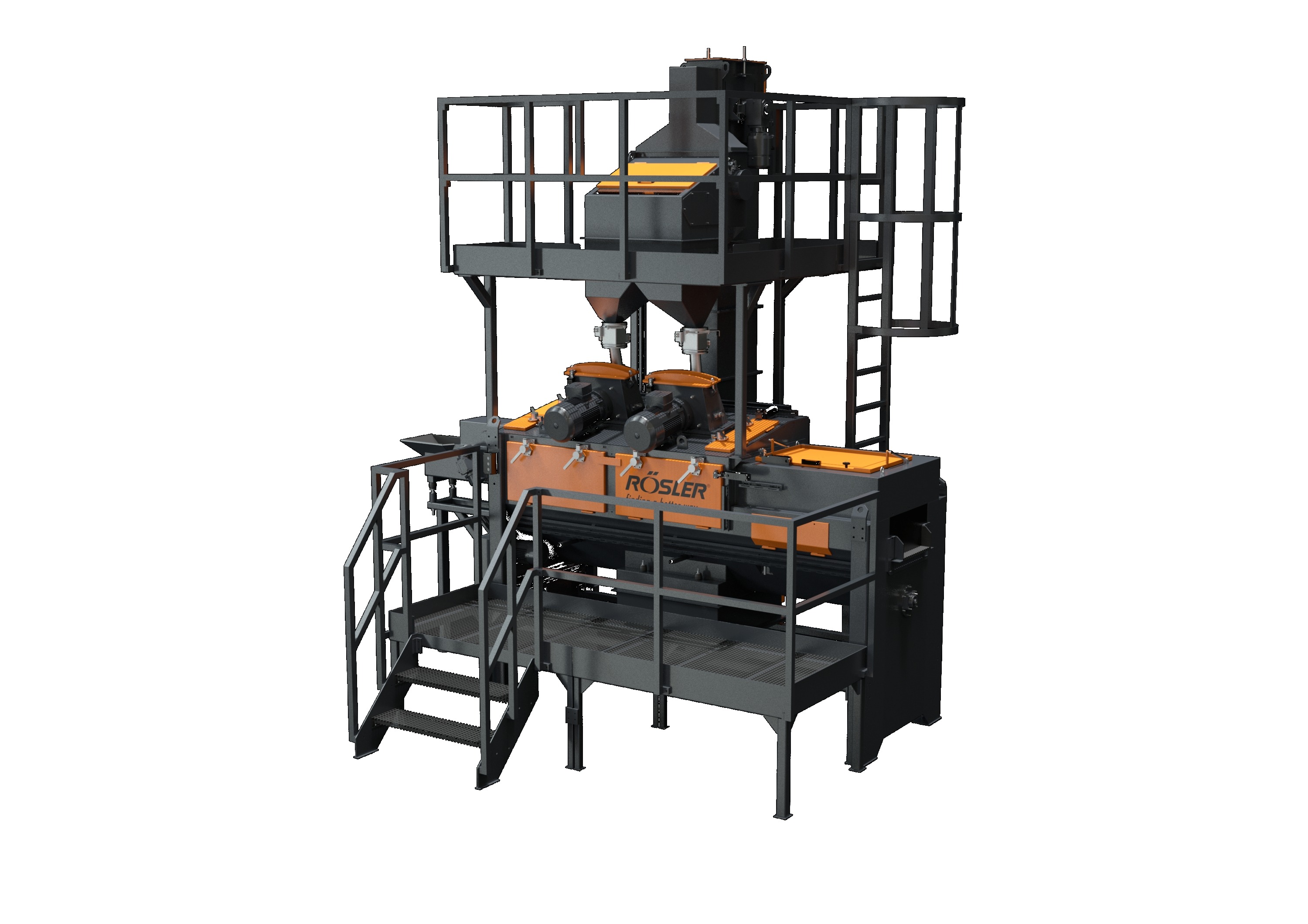 Since this blast cleaning application also requires somewhat coarser blast media, the RDGE shot blast machine is equipped with eight Evolution turbines, each with an installed power of 37 kW. Four of the turbines are placed on the machine roof and 4 are located below the first belt layer.