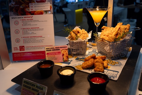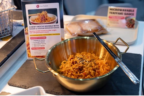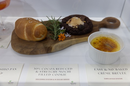 Popular concepts introduced by Ingredion at Fi Asia 2025. Among them, cocoa-reduced cookie with mochi filling, multi-textured fried chicken, mochi noodles with a sugar- and sodium-reduced sauce, and a wide range of beverages