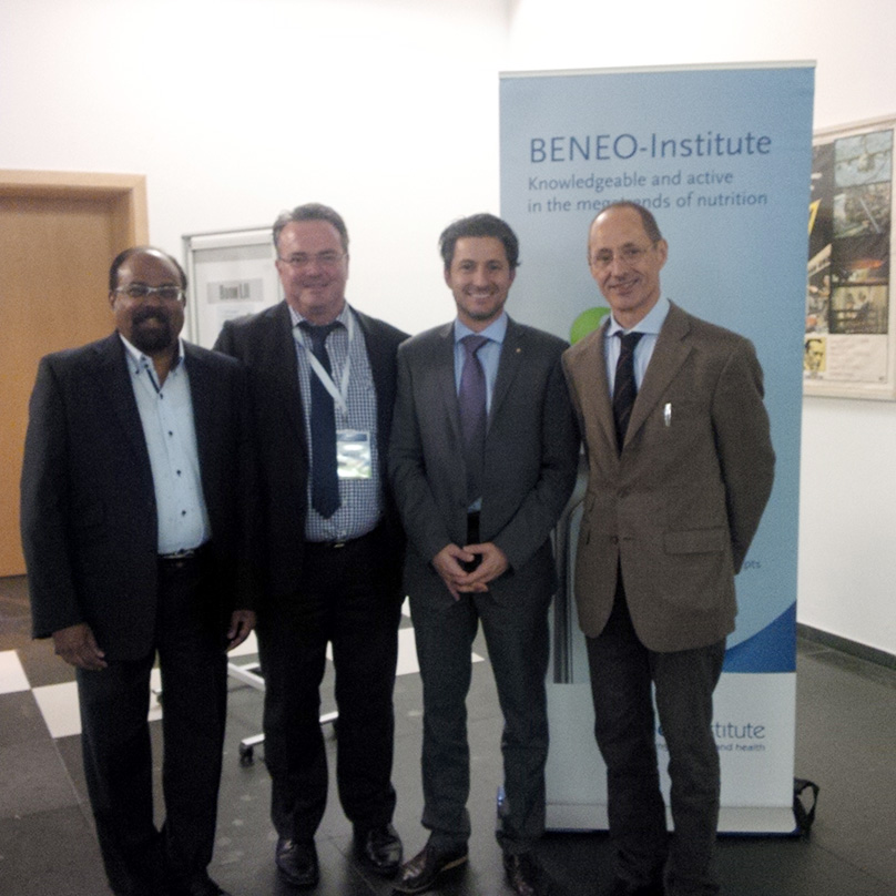 From left: Prof. Jeyakumar Henry, Director of Clinical Nutritional Science at Singapore Institute for Clinical Sciences, Singapore; Stephan Theis Ph.D., BENEO-Institute; Prof. Patrice D. Cani, Louvain Drug Research Institute, Metabolism and Research, UCL, Belgium; Prof. Andreas Pfeiffer, German Institute of Human Nutrition, Germany
