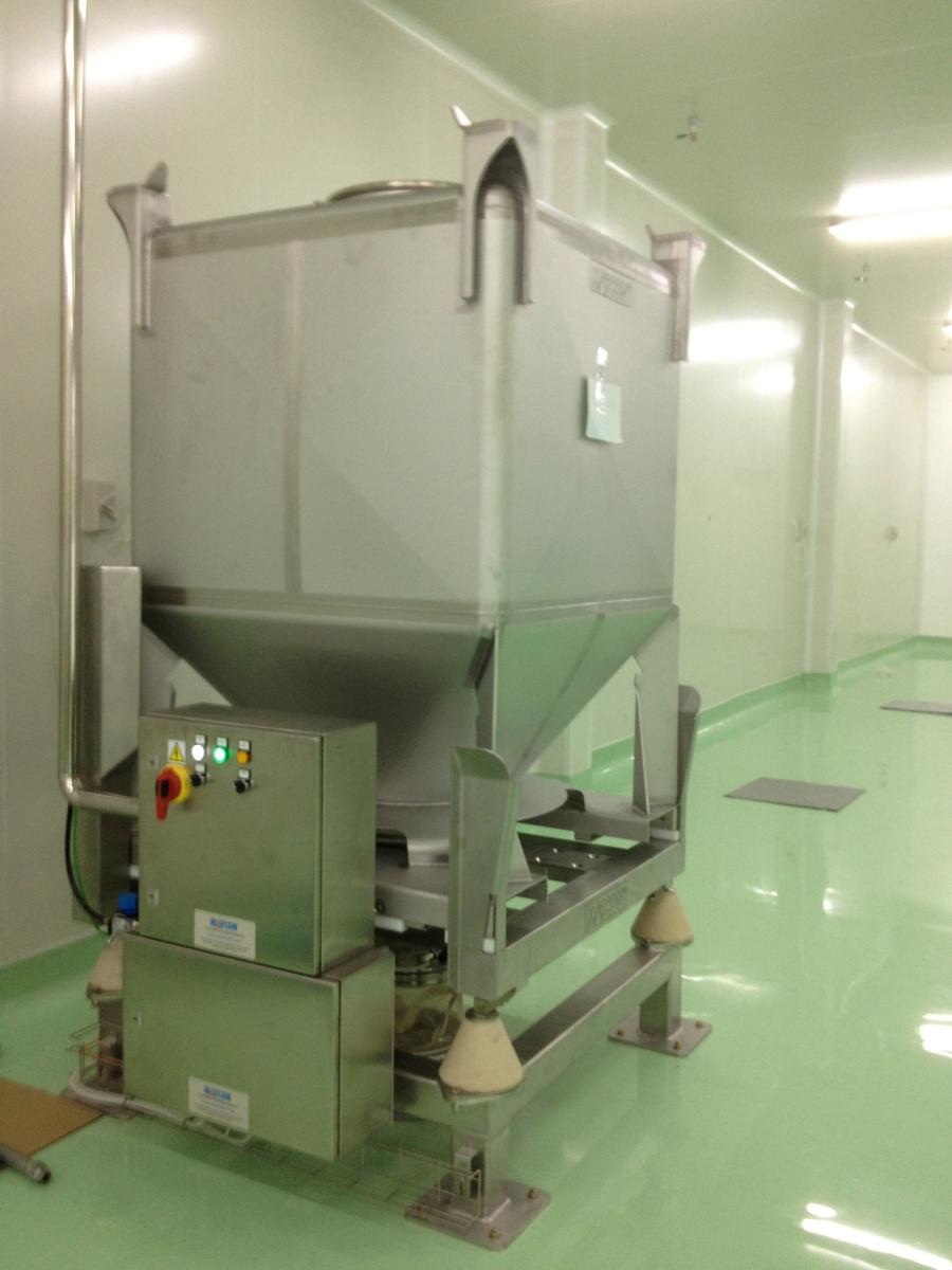 IBC Discharge Station feeding product through-floor to packing machines