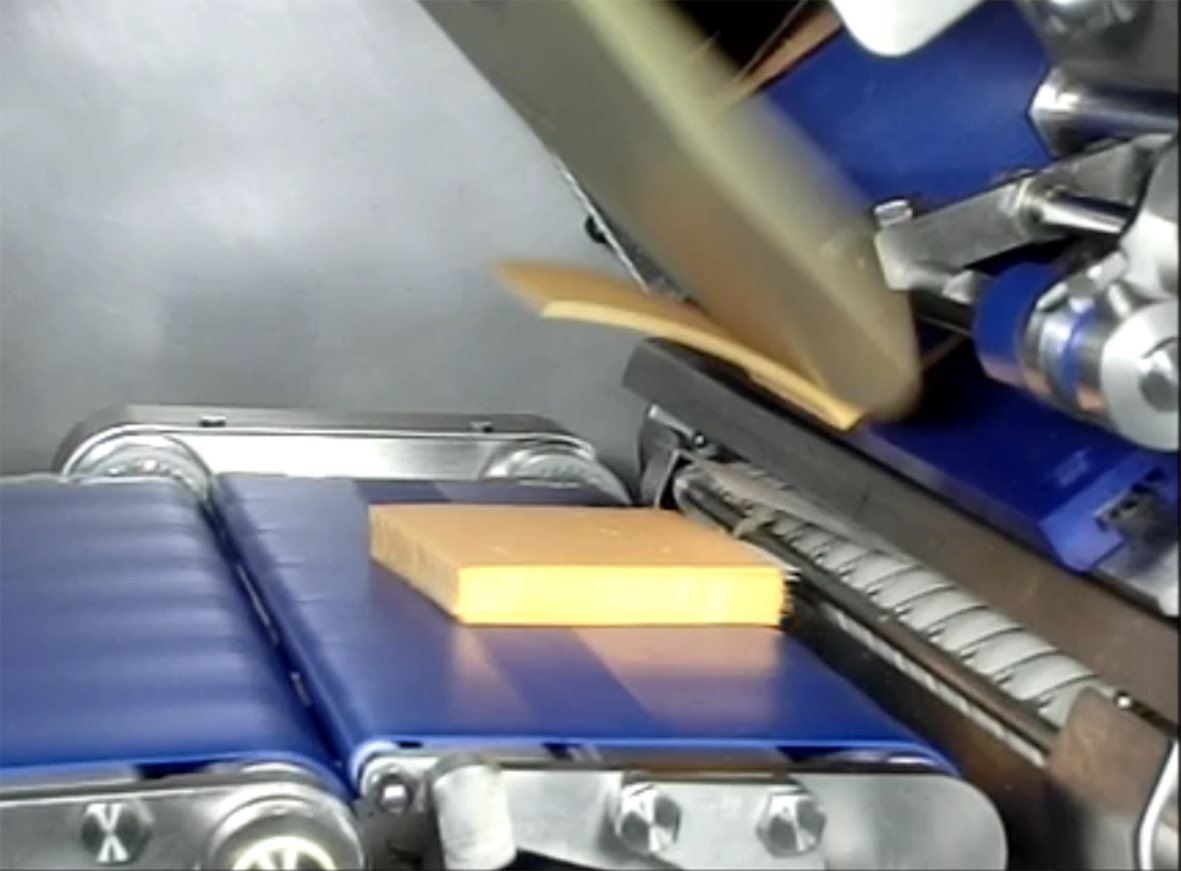 “Our Interleaver works differently from other systems in the market”, explains Chris Howard, VP Sales, “the product and the interleaving material are cut by two separate cutting mechanisms, enabling us to choose the product blade best suited to the hardness and texture of the cheese to be sliced. This circular or involute blade will deliver consistent product placement and pack presentation and – without reducing its edge by also cutting paper or film – stay sharp and perform well for longer.”