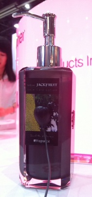 Scents featured (clockwise from left) yellow jackfruit for skincare lotion; macadamia in Guylian oil perfume from VDL Cosmetics; and muguet (lily of the valley) in DKNY Be Delicious