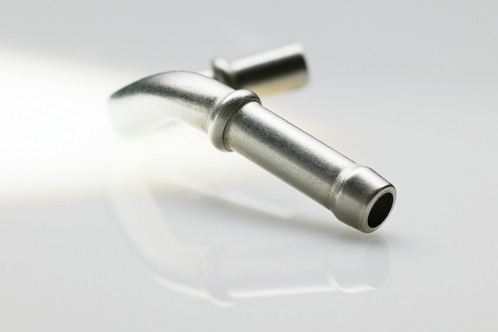 THIS is because geometries are becoming more and more complex and the pressure of remaining cost efficient is increasing significantly. There are various options such as being able to solder or weld objects such as a rotary part that was manufactured in advance onto a tube. The tube normally has to be calibrated for this. Soldering in a furnace sometimes changes the bent geometry, the join or the surface. And induction soldering is very cost-intensive. Leak-tightness must also be checked if necessary. Overall, this process is very time-consuming and always comprises a process chain in which additional soldering paste, a soldering ring or gas is required, as well as forming gas for welding. Large, complicated equipment is required for this.