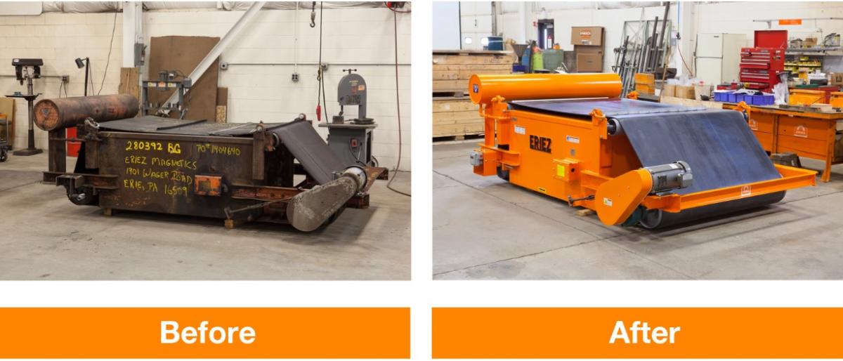 In addition to suspended electromagnets, Eriez 5-Star Service rebuilds vibratory feeders, scrap drum magnets, wet drum separators, metal detectors and more. Eriez 5-Star Service includes a wide range of rebuild, repair and re-certification programs for a broad variety of processing equipment.