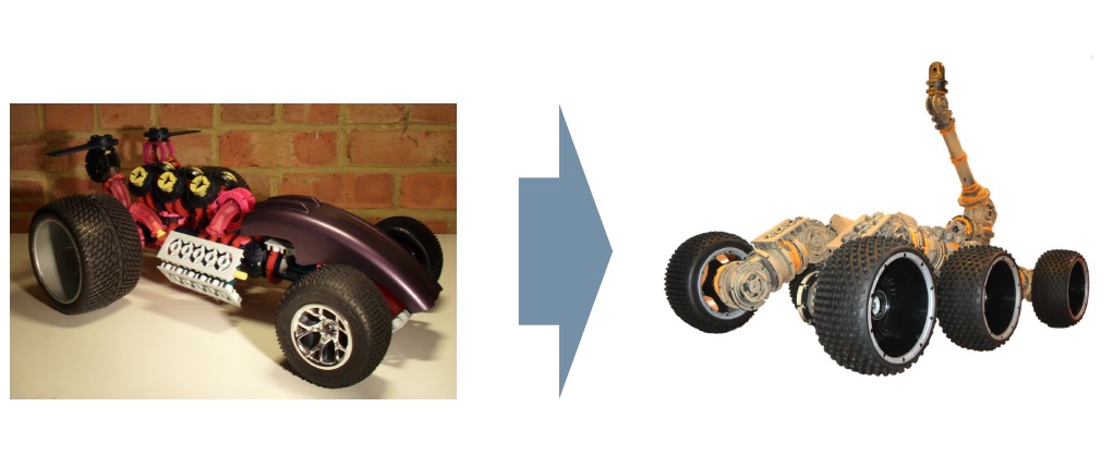 Pursuing the animal theme, I designed the robots to have a low centre of gravity for stability and a tail that acts as a damper and prevents flipping. Parts are deliberately springy and flexible so that the robots are both agile and resilient. Components are manufactured by tooling a computer numerical control (CNC) machined master, then vacuum casting in a variety of plastics. We use plastics because rigid things break easily and production costs are lower. However, we coat these plastics in a fine layer of metal instead of using separate metal components. This metallization process, which we applied to the universal connector, enables us to make parts that are strong, cheap and light. Material science has been a whole new learning curve for me. I’ve picked up a lot of knowledge about different aspects such as how to design parts for strength and flexibility.