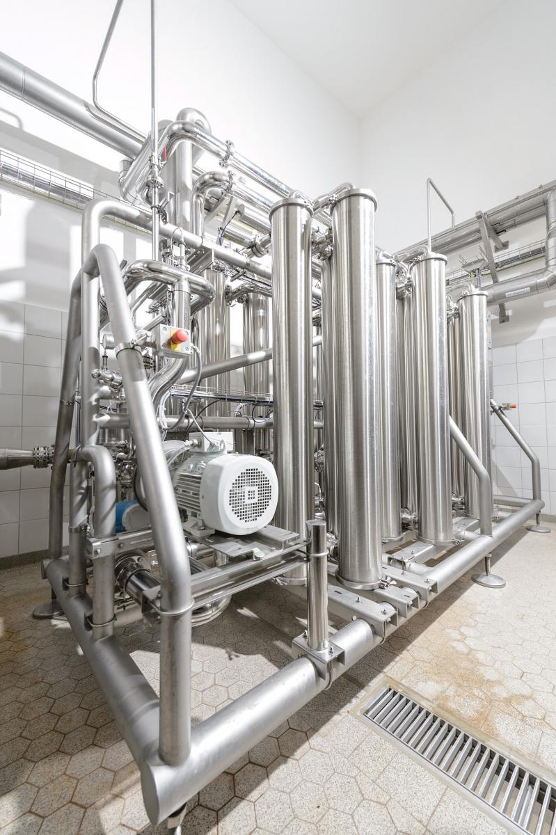 All system components, including the piping, can be thoroughly cleaned, using the internal CIP system, and be sanitised with hot water at about 85 degrees Celsius