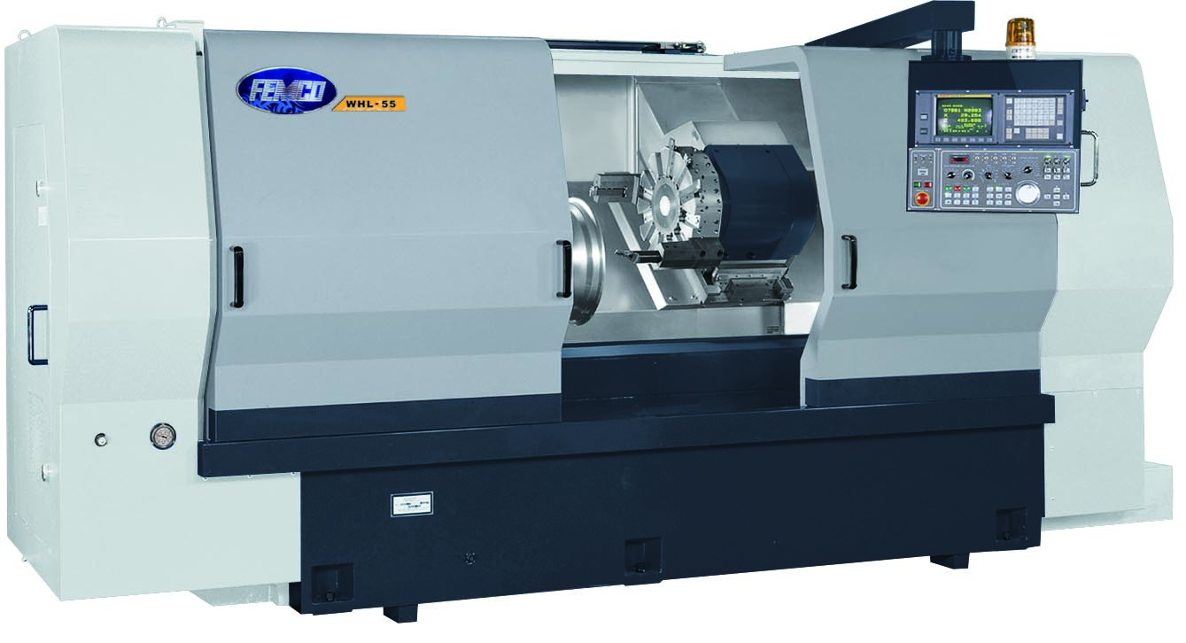 FATEK Horizontal Wheel Turning Lathe WHL-55 from FEMCO is able to do bigger turning diameter than other competitors and it is suitable for generic models from 14’’ to 22’’. Our wheel turning lathe is trusted by main aluminium wheel factories in the world. X-axis travel: 340mm, Z-axis travel: 700mm, Max Swing over bed: 727mm, 45° Bed Design will improve chip removal during the wheel turning process. Special designs with casted X-slide way and machine body, high frequency thermal treatment, improved strength and resistance to wear for the slide way, higher turning performance. High performance AC servo motor drives the X/Z-axis for direct transmission system; beltless and gearless design to reduce backlash and vibration which can provide precision positioning of the working components.