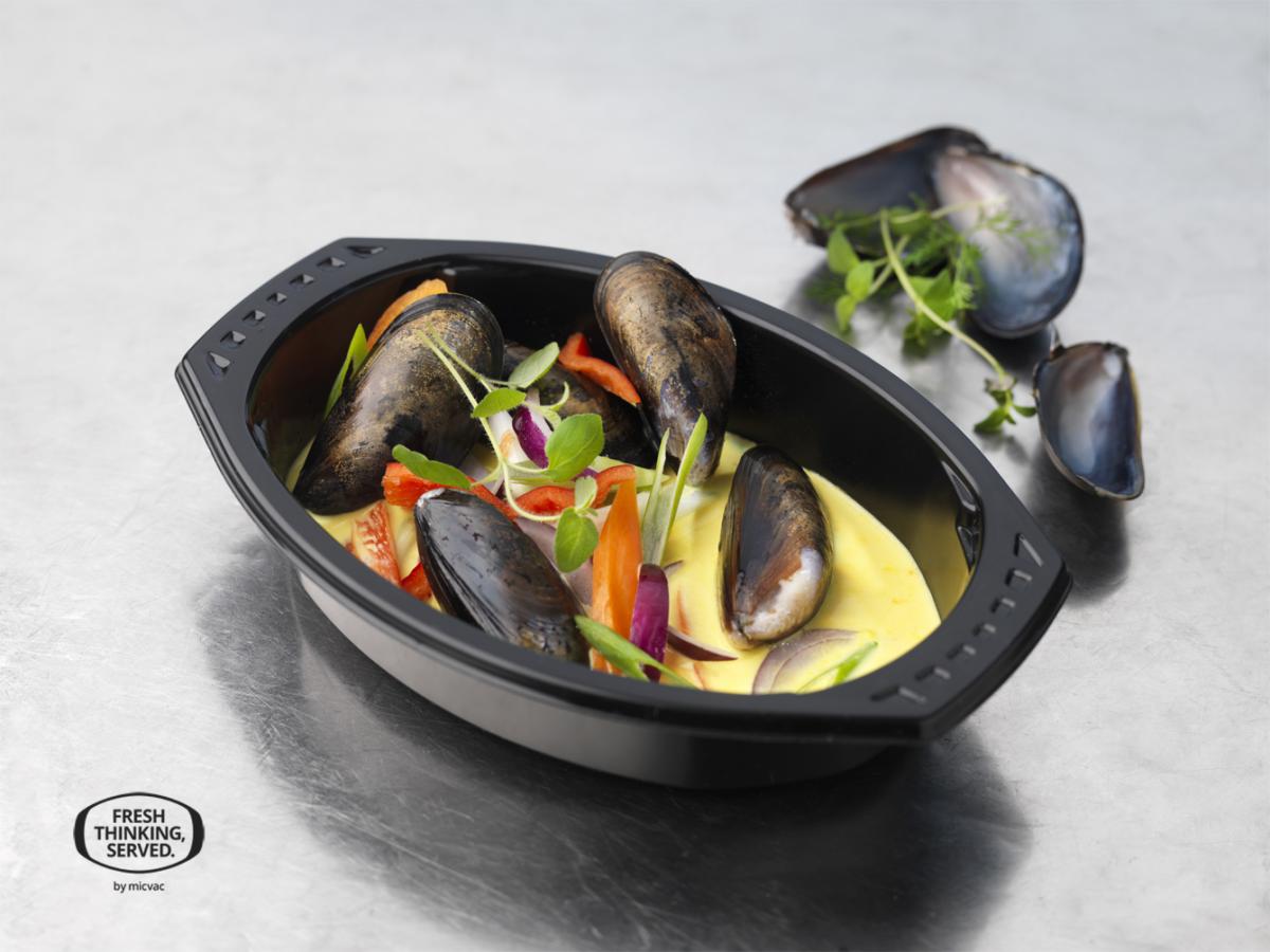 At the fair, Micvac will present the new two-compartment tray. The vacuum in the pack enables a standing presentation in the shop shelf if required.