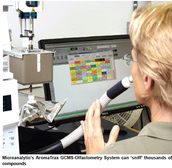 heavy-duty and reliable line comprises three printers: 9020, 9030 and 9040. With single-jet and bi-jet printheads available and a wide choice of configurations, the 9000 Series is especially suitable for the food, beverage, pharmaceutical and cosmetic industries. A large selection of inks makes printing possible on just about any substrate. An intuitive user interface and easily accessible consumables mean this series is user-friendly. Nose needed here Several recent product recalls have been sparked by consumer complaints about mouldy or musty odours associated with nausea, stomach pain, vomiting and diarrhoea. Microanalytics, a subsidiary of MOCON, Inc. (Booth 6232), has developed improved approaches to identifying the source of industrial odours and can help g