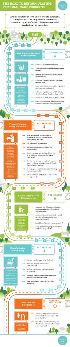 REFORMULATING personal care products is a process that requires multiple steps as this infographic explains. Whenever an ingredients is phased out or replaced, it impacts every stage from testing the stability of the raw material to positioning the final product on the shelf. the way from What does it take to reformulate a personal care product? Product reformulation is no simple process.