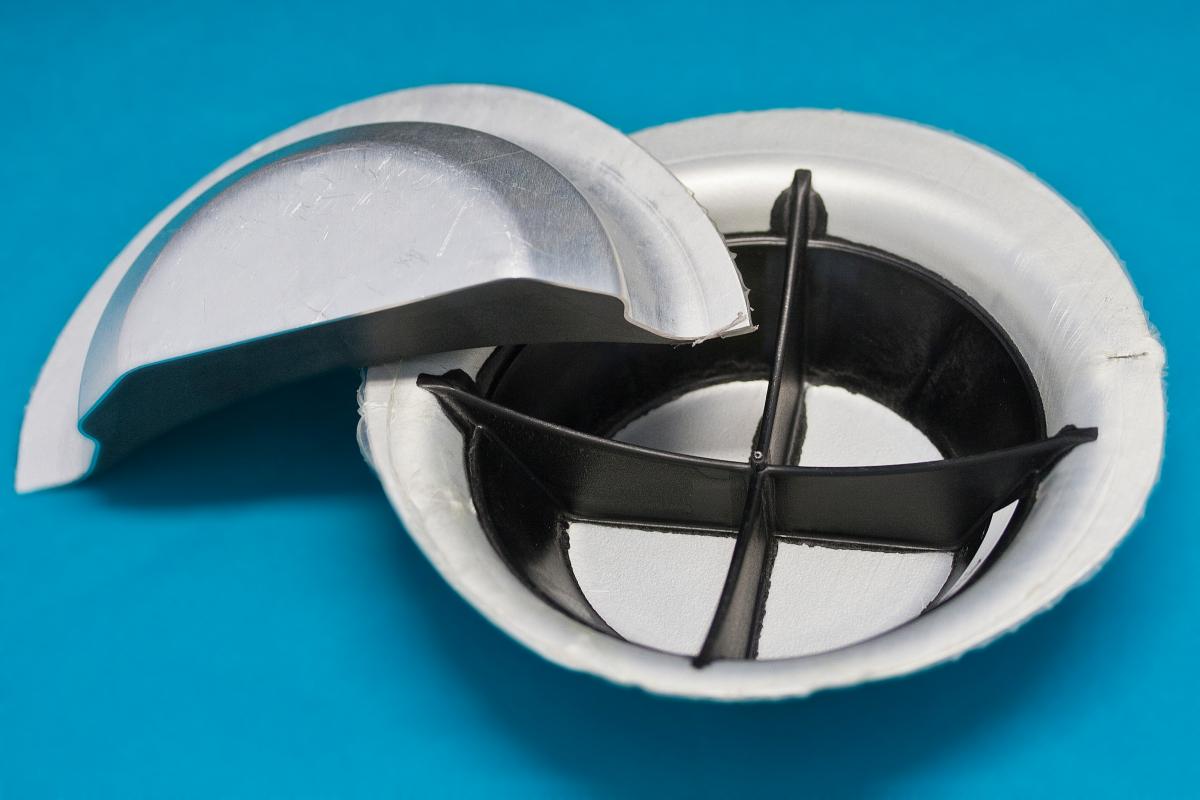 Fraunhofer IWU, working together with Technische Universität Chemnitz, has developed a process combination that allows manufacturers to produce metal-plastic hybrid parts in a single production step. The metal test component is deep-drawn in a first sub-step and the plastic is injected later in the same die. Researchers were able to use the high injection pressure to form secondary design elements in the test component.”