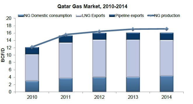 In 2014, Qatar’s LNG supply dropped down to 9.85 BCF/D, which was a 4.2 percent decline from 2013 supply volumes. This has been mainly because of Qatar’s high domestic gas consumption along with the decline in international oil prices that has led to lower LNG demand. Going forward, the domestic gas consumption in Qatar is likely to increase at a high rate, which will influence the future LNG supplies from Qatar.