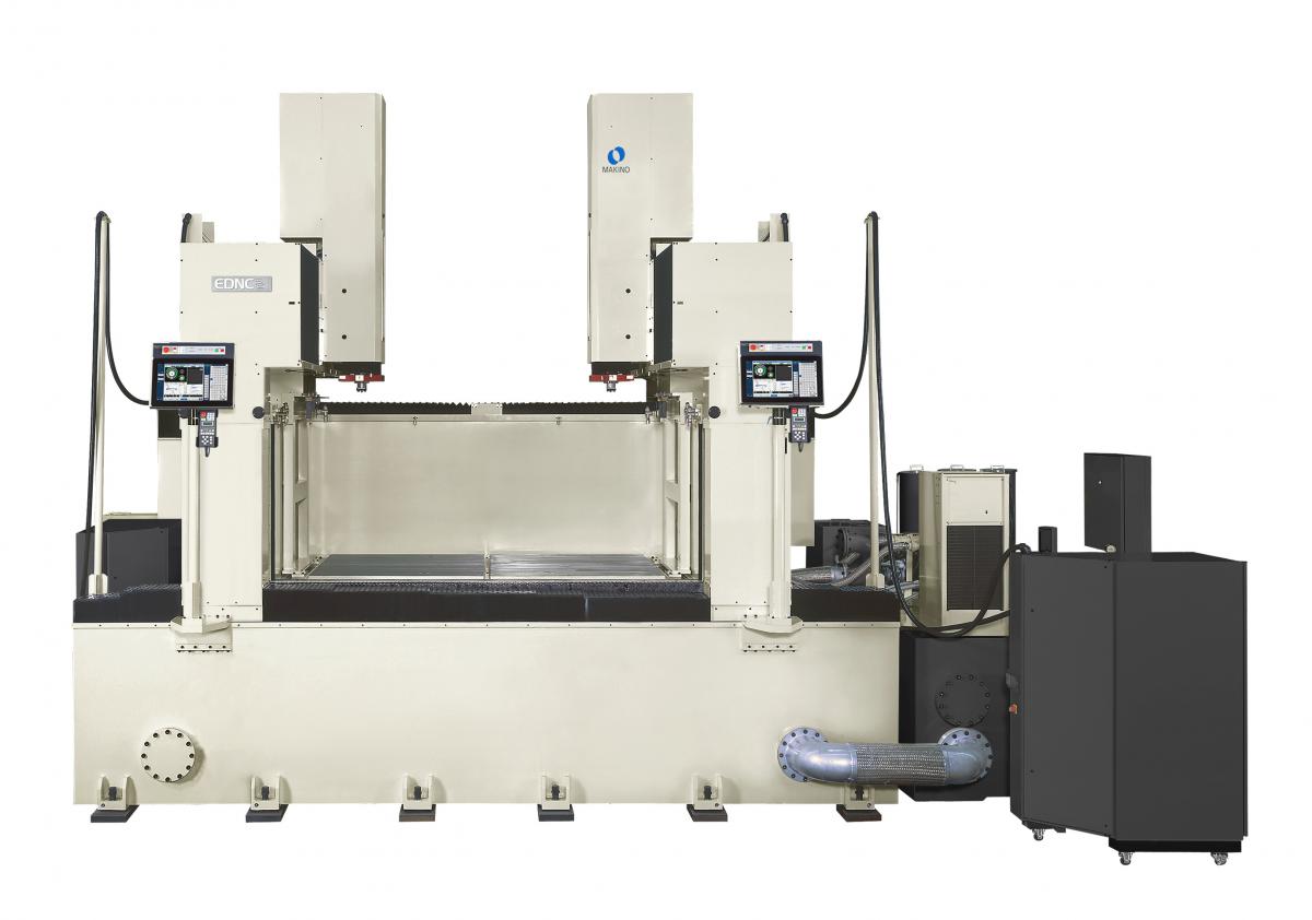Brian Pfluger, EDM product line manager explains the dual-head configuration of the EDNC21 sinker electrical discharge machine (EDM) from Makino enables shops to process multiple fine details in a workpiece at the same time, significantly reducing total processing time.