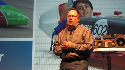 As the lights dimmed in the session hall, John Miller opened the event welcoming users, sponsors and partners and pointing out the many different ways that they could participate and benefit from the event. John had a specific mention for the Greenpower academic program that encourages young people into design and engineering – the Greenpower program is going global in 2016.