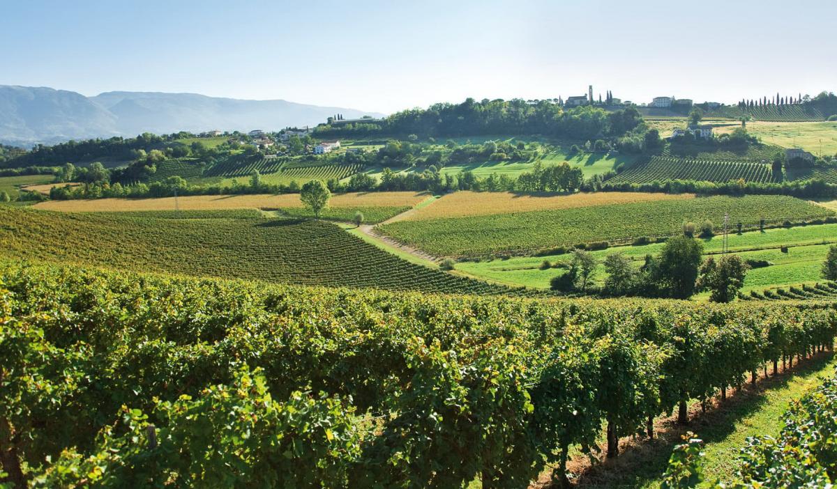 Today Prosecco is produced exclusively in the D.O.C. zone that covers nine provinces in the regions of the Veneto and Friuli Venezia Giulia. In the heart of the denomination, between Venice and the Dolomites, lies Treviso, the province with the greatest number of high-quality vineyards, which also contains the famous and historic hilly areas of Conegliano Valdobbiadene and of Asolo: both of these zones can boast D.O.C.G. (Denominazione di Origine Controllata e Garantita) status. D.O.C.G. sparkling wines from these hilly zones can easily be recognized because the label always shows the name of the production area – Conegliano Valdobbiadene or Asolo – and the wine is also entitled to the “Prosecco Superiore” appellation. Asolo offers a combination of winemaking tradition and Venetian art. Conegliano Valdobbiadene is the better-known area. Conegliano is the main location for actual production as well as for research, boasting as it does Italy’s first School of Oenology, dating back to 1876; Valdobbiadene and its area are renowned for the beauty of the vineyards that adorn the hills, whose steep slopes compel growers to tend them by hand, in the traditional way. This unique area is also the source of Cartizze, the Grand Cru of the D.O.C.G. zone.