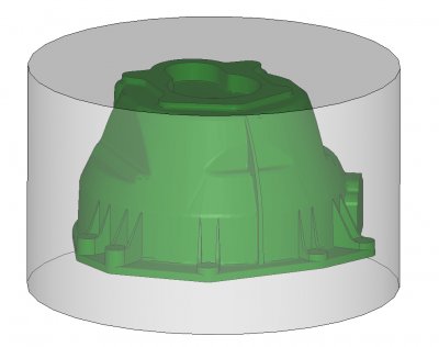 Figure 3. A stock model of bar stock is sized to encompass a CAD model that represents the final part after all machining is complete.