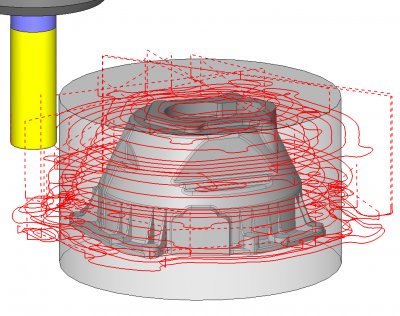 Knowledge of the stock facilitates the calculation of improved types of toolpath like “bottom-up” toolpath for faster roughing. Bottom-up machining uses upward, rather than downward, incremental steps to not only remove material faster but to also attain a smaller residual stock height on the part surface for better finishing later.