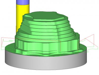 Figure 6. A subsequent operation calculates toolpath only on the stepped areas between the remaining stock and the CAD model.