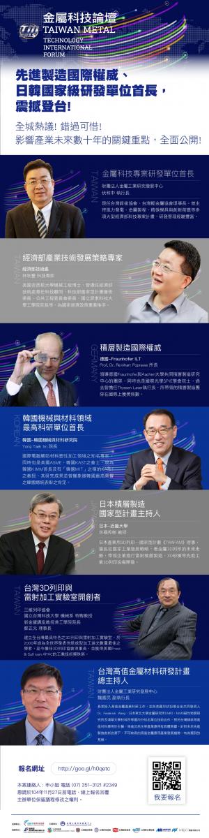 Taiwan MIRDC, the government-funded central research institute of metal technology, is organizing “Taiwan Metal Technology International Forum” in Kaohsiung City, Taiwan. The venue is in the biggest exhibition hall in the Southern Taiwan. MIRDC invites additive manufacturing expert Prof. Dr. Reinhart Poprawe, who is the director of Fraunhofer ILT in Germany. Dr. Poprawe is well known for his laser and plasma technology researches. He will share about the development of additive manufacturing in the Europe, together with the extended application trend.