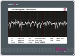 Given the harsh conditions prevailing within machine tools, the automated, machine-internal measurement of surface quality was considered to be technically impossible for the longest time. Moreover, customers in the high-production serial manufacturing sector expect extremely short measurement times but also maximum reliability and precision. BLUM decided to tackle this challenge. Based on the DIGILOG technology first presented in 2010, the company's engineers developed the new TC64-RG. Like all of the other TC touch probes, the TC64-RG is fully suitable for use in machine tools, is resistant to coolants, and has IP68 protection. It performs measurements at a remarkable speed too. Standard milled, turned or ground surfaces can be tested with µm precision in just a few seconds and analysed in terms of the roughness parameters Ra, Rz and Rmax. The detected roughness values can either be documented for later use, output as a status value, or displayed via the GUI.
