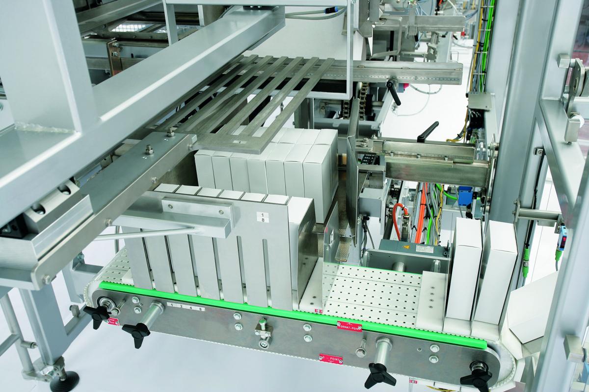 DESIGNED to end-package folding boxes containing pouches of milk powder into trays with or without lids and wrap-around cases, the VP 453 is equipped with a Siemens Simatic S7-1500 control system and an expanded machine analysis through the new Simatic HMI Comfort Panel TP1500. An integrated, energy-saving SEW Moviaxis-Servosystem boosts machine dynamic.